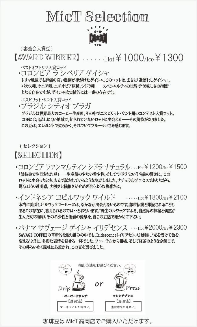 - 9月20日(土)【Café《富山店》】MicT Selection|新ラインナップ(5種)