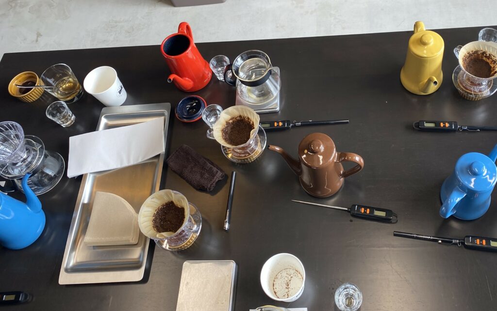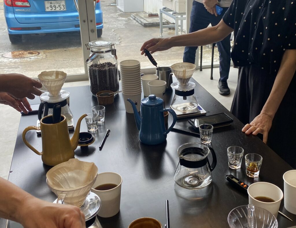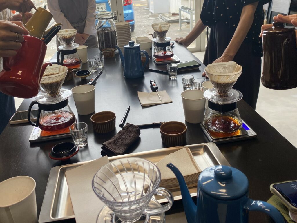 カッピングで香味を比べていただき、多数決をとろうとしましたが、結果は同じ数。